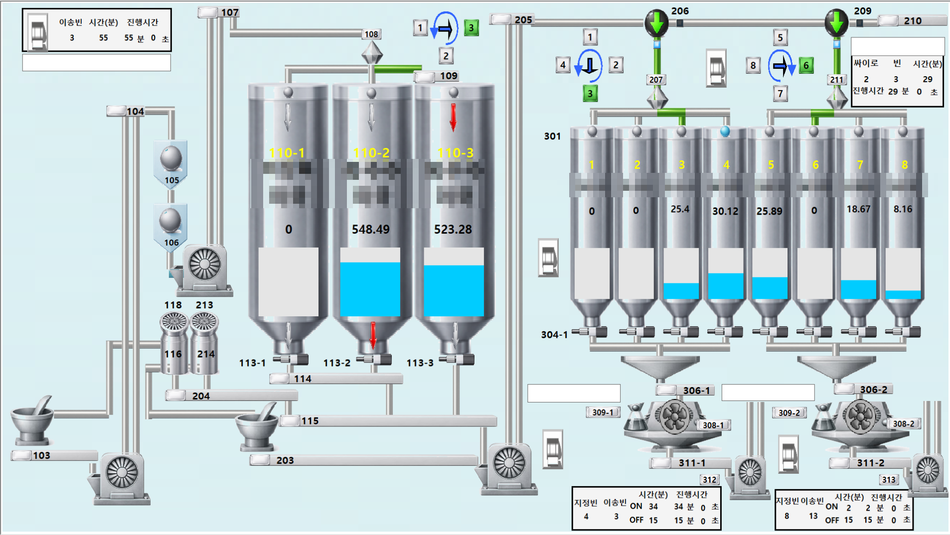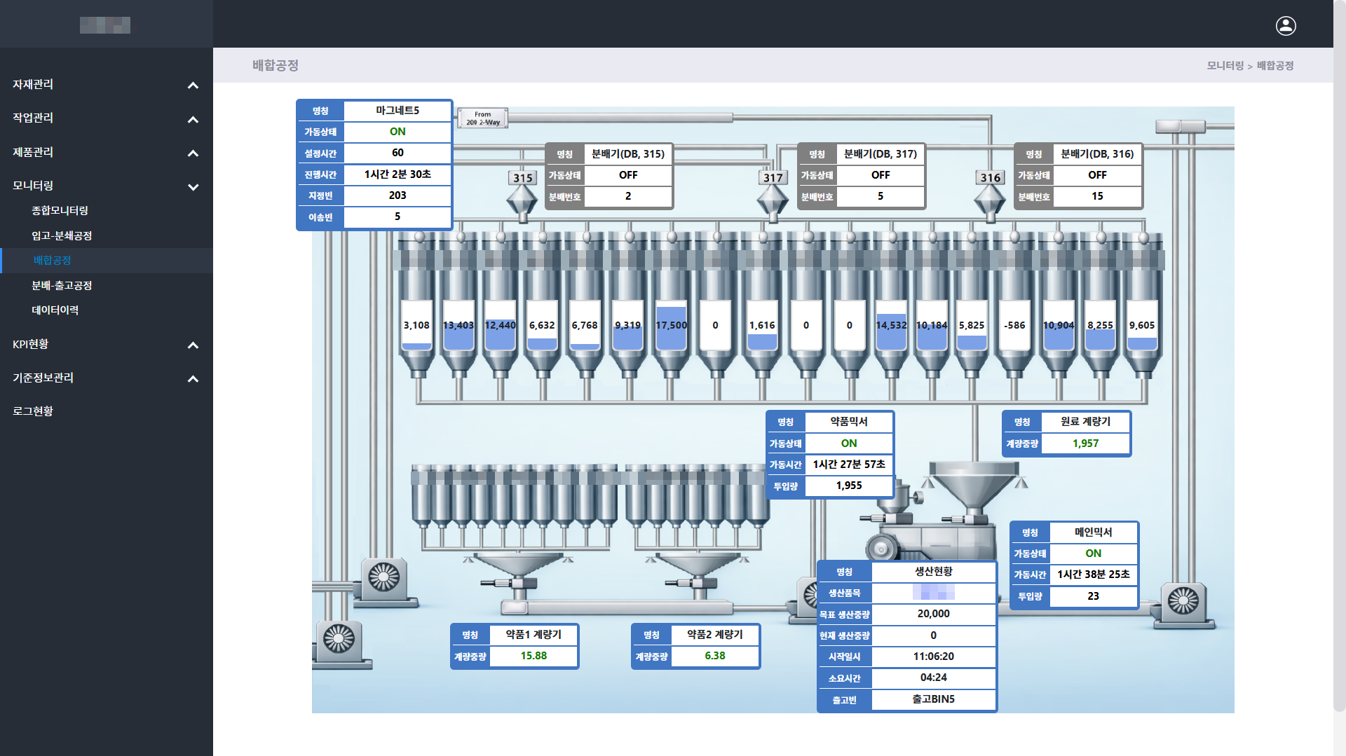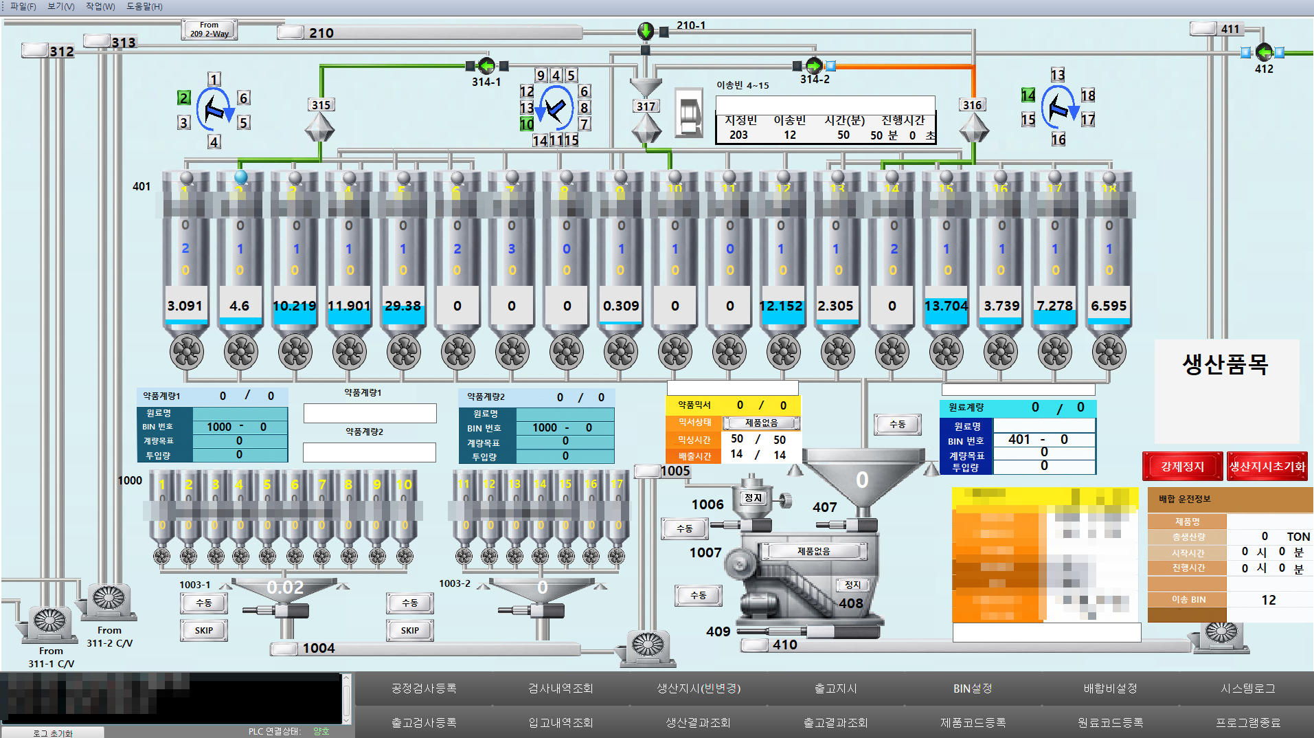 설정된 배합비에 따라 원료 및 약품 자동배합 및 생산, 저장까지 일괄 자동 처리