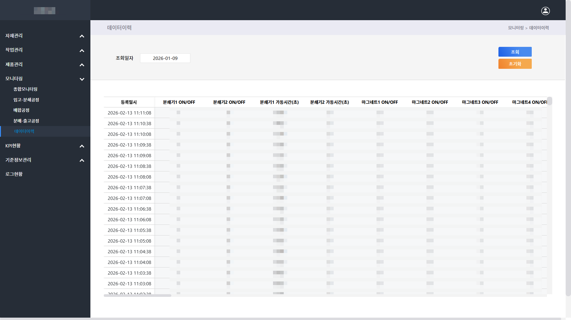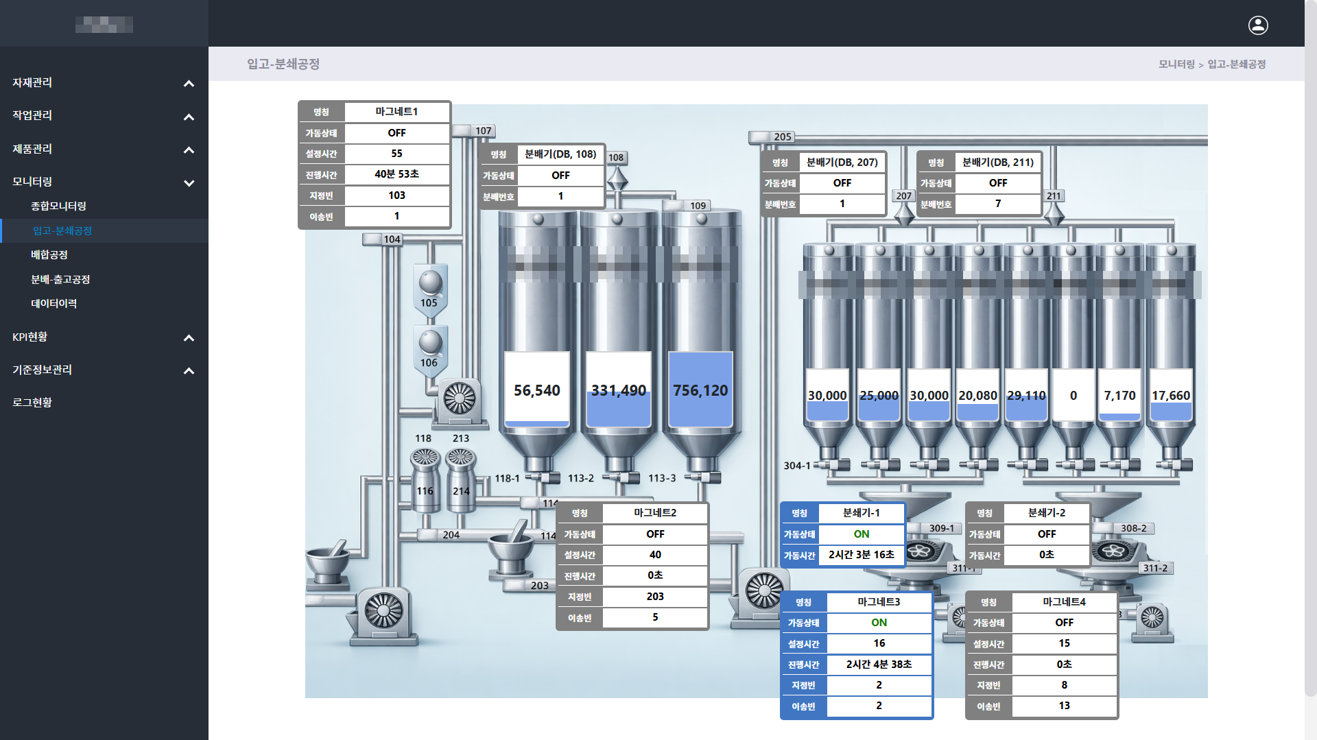배합 및 출고 이력이 자동 저장되며, 웹 기반 원격 모니터링으로 실시간 확인 가능